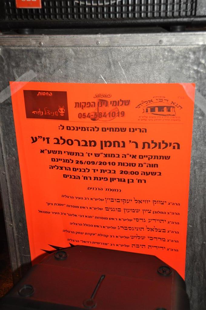 בהרצליה נערך אתמול אירוע מיוחד לציון שנת ה-200 להסתלקותו של רבי נחמן מברסלב. המעמד נערך בניצוחו של הרב יהוידע גדסי, בהשתתפות הרב יצחק יחיאל יעקובוביץ רב העיר הרצליה, הרה"צ המלובן ציון שמעון בוגנים ראש מוסדות ´יושבת ציון´, הרב בצלאל הוניסברג, הרב מרדכי שלוש רב קהילת ´עקידת יצחק´, הרב ידידיה היבה רב מדרשיית רזיאל והרב משה בן לולו מערוצי הקודש.