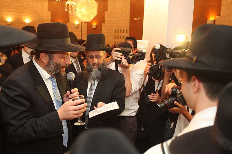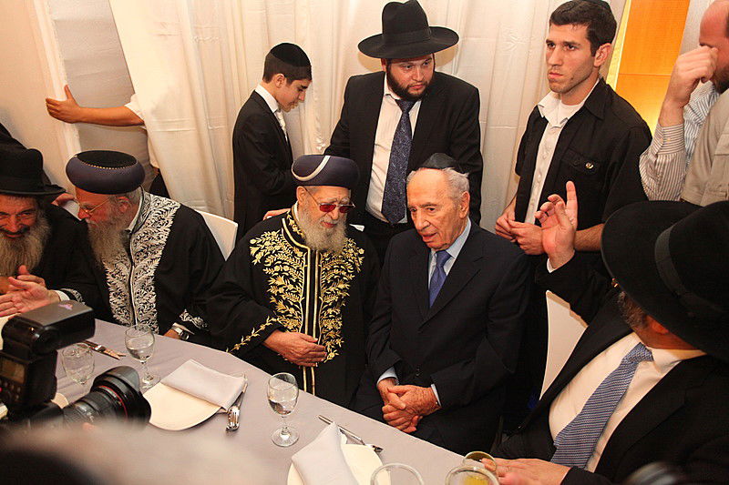 כמו פעם, בימים הטובים של אריה דרעי כיו"ר תנועת ש"ס, נראה אתמול דרעי יושב בניחותא לצד מרן הגר"ע יוסף ונשיא המדינה שמעון פרס. זה קרה בחתונת בנו של רבי דוד יוסף, בנו של מרן הגר"ע וראש כולל "יחווה דעת". מאיר אלפסי, צלם "כיכר השבת", בתיעוד מצולם מהחתונה וקליפ מיוחד (גלריות)