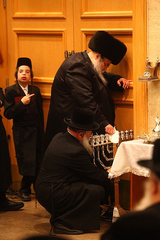 כל אחד מדליק בביתו עם משפחתו ולאחר מכן באים להדלקה אצל האדמו"ר שליט"א