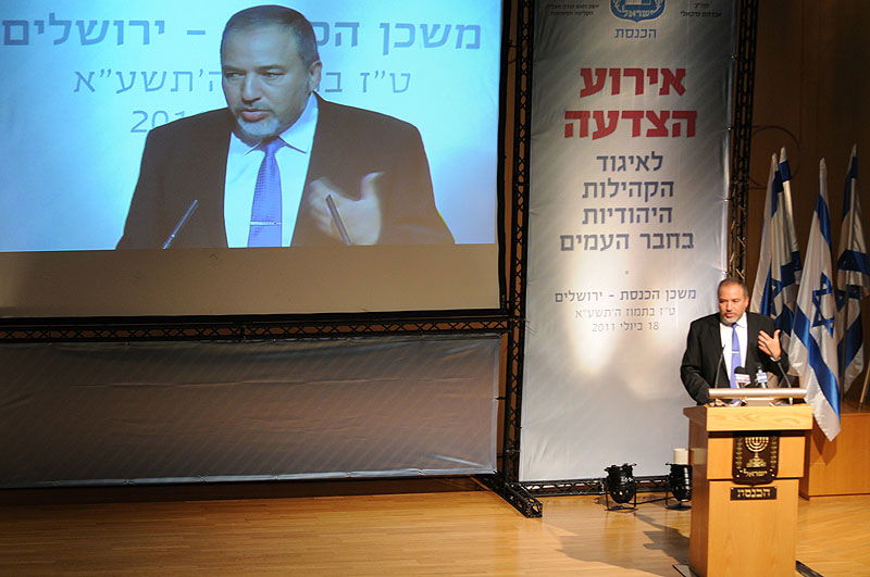 בצעד נדיר, קיימה אתמול הכנסת אירוע הצדעה לשלוחי חב"ד בחבר-העמים, המציינים בימים אלה עשרים שנה למהפכה הגדולה. שר החוץ, אביגדור ליברמן נאם ושיבח את השלוחים, ויונתן רזאל סיפק קטעי שירה מרגשים. את האירוע הפיקה חברת פליישמן הפקות. צילם: ישראל ברדוגו (בארץ)
