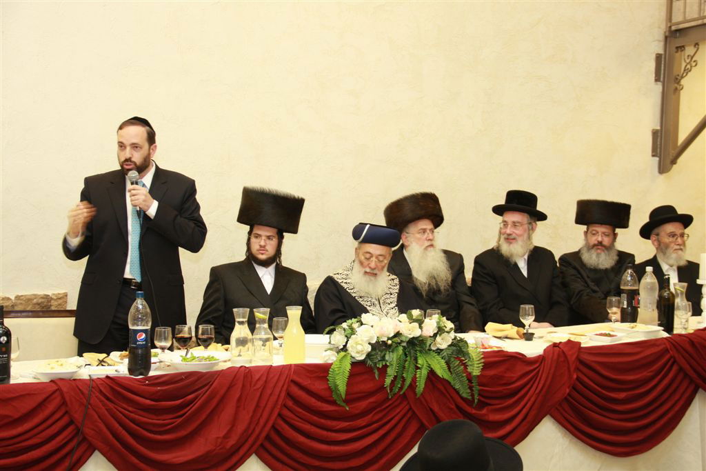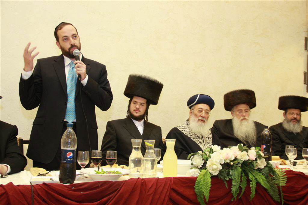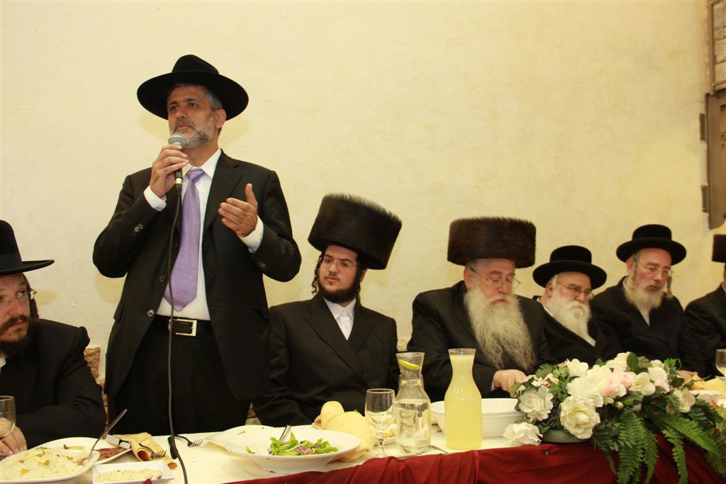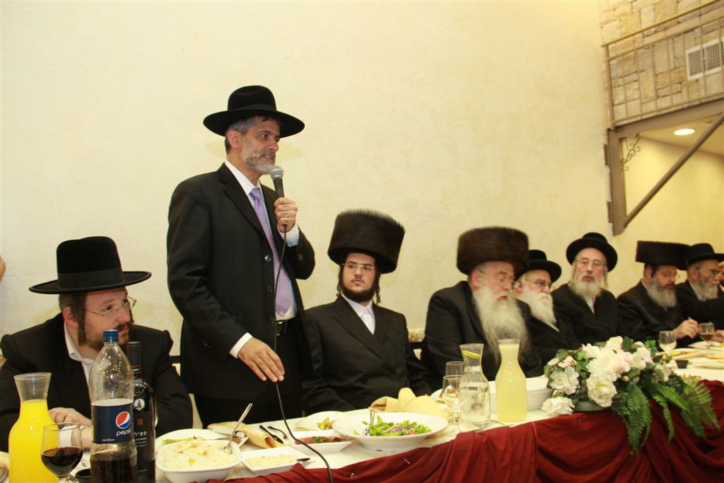 שמחה של איש אחד: קהל רב השתתף בשעות הצהרים בשמחת השבע ברכות לרגל שמחת נשואי בתו של מאיר פרוש, יו"ר אגודת ישראל בירושלים ויו"ר תנועת שלומי אמונים שנערכה על-ידי מערכת עיתון