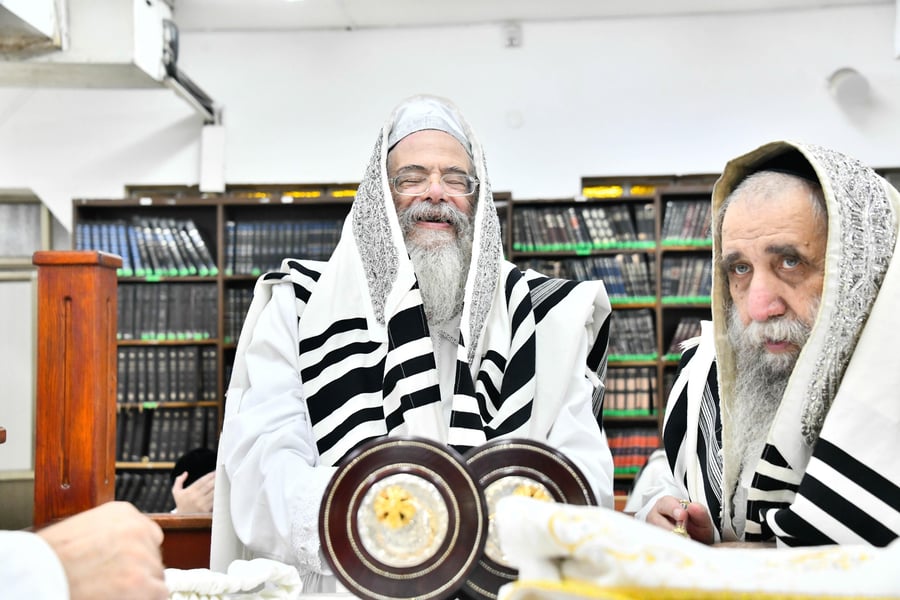 לבן כשלג: האדמו"ר מחוג חתם סופר עם כיפה לבנה בהושענא רבה