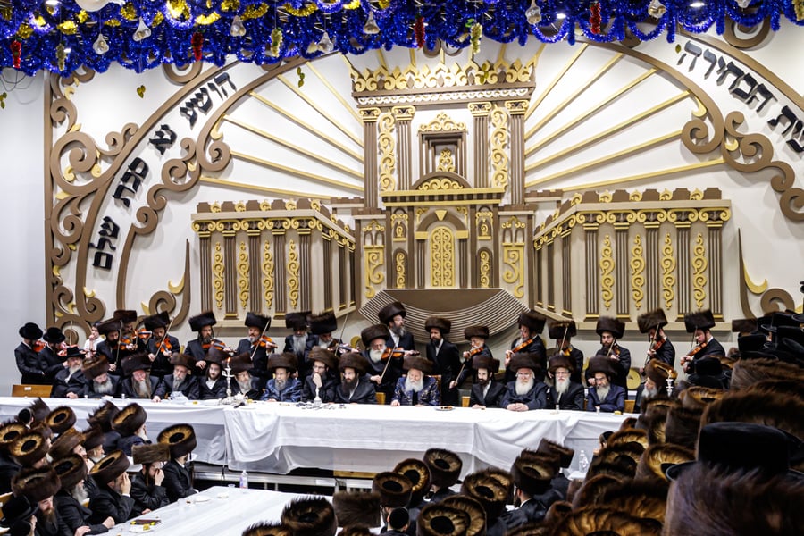 תחת גשם זלעפות וקול הכינור, הרבי מבאבוב המשיך בעריכת הטיש