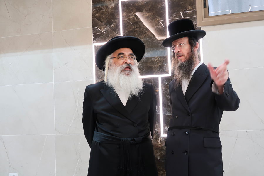 האדמו"ר קבע מזוזה בפתח האולם החדש שייתן מענה לחסידים בשמחותיהם