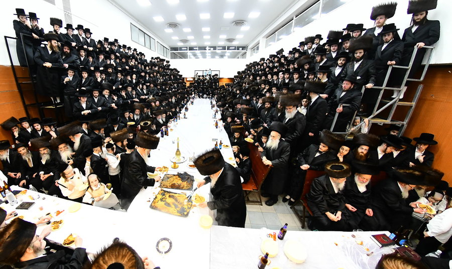 שעה לפני החג | אלפי חסידי תולדות אהרן פיזזו בחצר ביהמ"ד הגדול