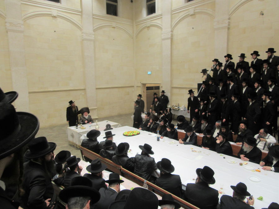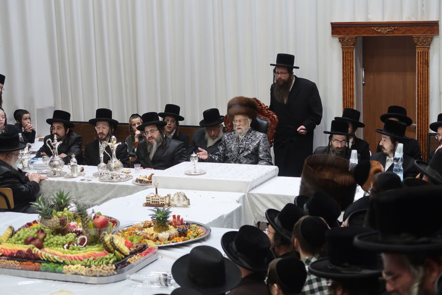 במלבושי קודש כמנהג רבותיו: תיעוד מרהיב מהשולחן הטהור בתולדות אברהם יצחק