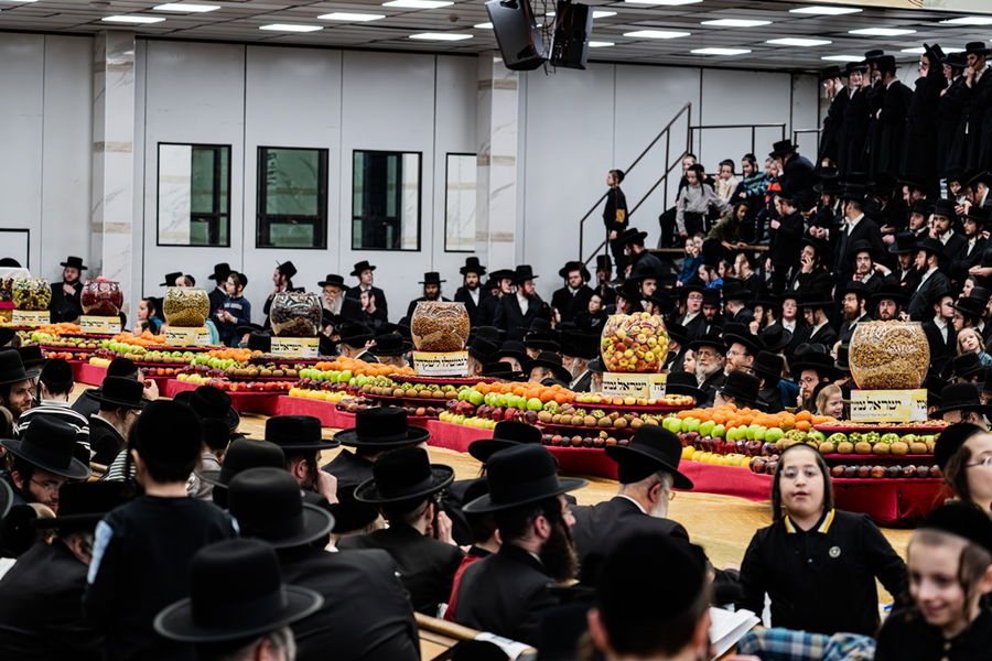 מלוא חופניים ברכות: התיעוד המרהיב מטיש הפירות של הרבי מסקולען לייקווד