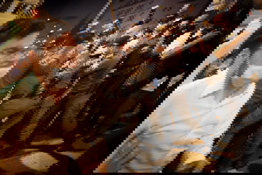 בשעה 23:00, יצא ההפגנה מכלל שליטה, והמשטרה החלה לבצע מעצרים מהירים, כאשר בתוך דקות ספורות היו למעלה משבעה עצורים שביצעו הפרות סדר חמורות במקום.