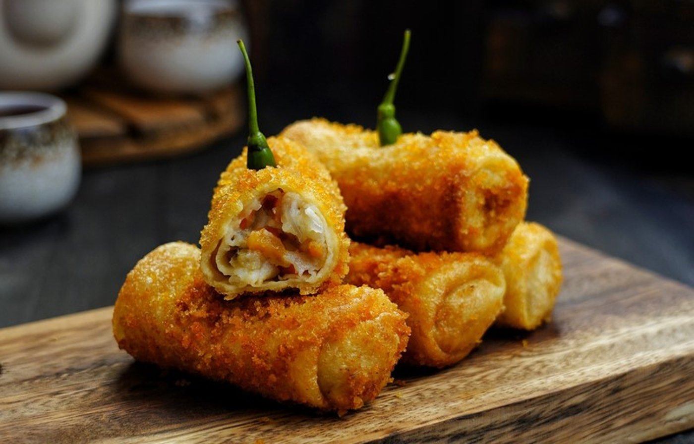 4. במחבת גדולה, מחממים שמן לטיגון חצי עמוק, מצפים את הבלינצ'ס בביצה הטרופה, מגלגלים בפירורי הפנקו וומטגנים להזהבה יפה מכל הצדדים. מגישים חם לצד רוטב צ'ילי לטבילה או כל רוטב אהוב אחר.