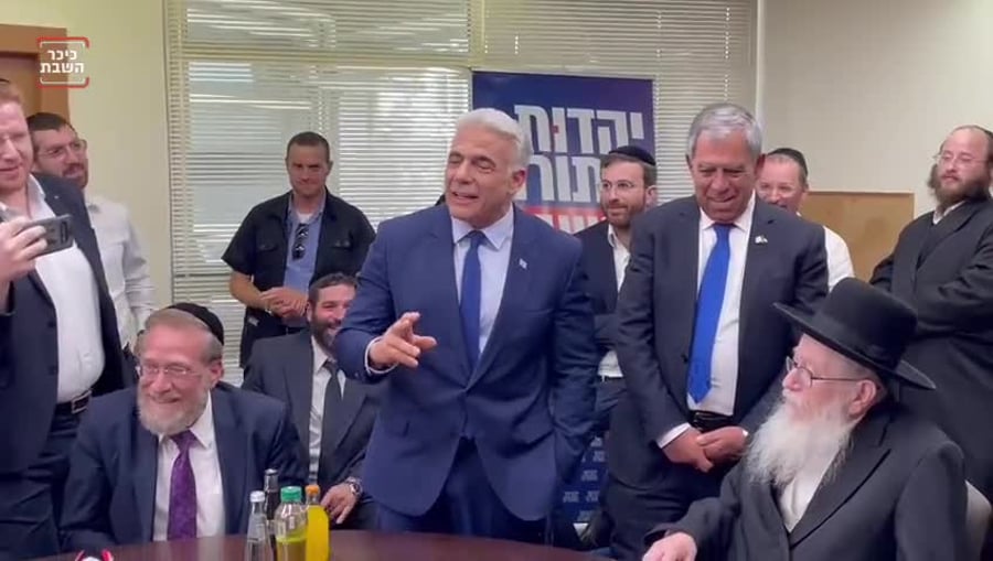 כזכור, השר יאיר לפיד, שכולם הופתעו לראות אותו בחדר הסיעה של המפלגה החרדית אמר לנוכחים, "אני נוהג לאיים על הרב גפני שאם הוא יעצבן אותי, אני אעלה לדוכן הכנסת ואחשוף כמה יחסינו טובים".