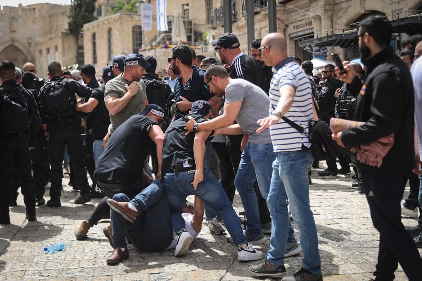 עוד מסרה המשטרה כי "מאות התקהלו מחוץ לבית החולים הצרפתי בשייח' ג'ראח והחלו לקרוא קריאות הסתה לאומניות. קצין משטרה שהיה במקום כרז והזהיר את ההמון בטרם נקיטת פעולות אכיפה.