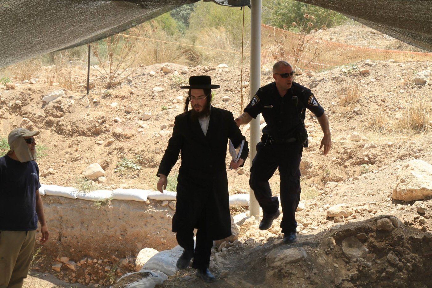 מספר מפגינים חרדים הגיעו הבוקר (יום ב')למתחם עבודות סמוך לשער הגיא, ומחו על חילול קברים המתבצע לטענתם במקום. "כלא לא ירתיע אותנו" אמר אחד המפגינים. אחר, פנה לפועלים הזרים ואמר: "כולנו יהודים, ולכולנו יש תורה שאומרת שאסור לעבוד פה" • צפו בוידאו ותמונות (צילומים: יעקב לדרמן)