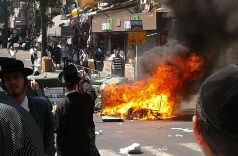 רחובות שכונת גאולה ומאה שערים נחסמו הבוקר (שני) לתנועה עקב פחים שהוצתו בעקבות עבודות הבנייה במתחם גולובנציץ' בבית שמש, אליהם מתנגדים פעילי "אתרא קדישא".