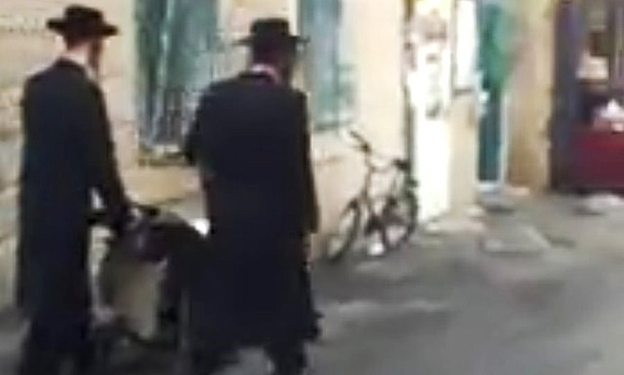 עגלת תינוק תמימה למראה ורמקול רב עוצמה שמכוסה במגבת - כך הכריזו הבוקר (רביעי) בשכונת מאה שערים בירושלים לצאת ולהפגין במתחם גולובנציץ' בבית שמש • שמוליק אברהם, שתיעד, מסביר כי "הסרטון לא צולם בגלוי ובמצלמת סטילס משוכללת מחשש לצעקות חרד"ק ונתיצת הסמרטפון לחלקיקים" • צפו (חרדים)