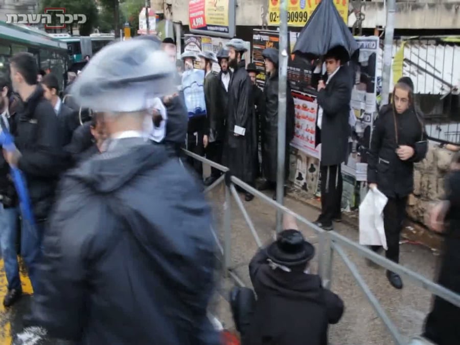 בשעות הצהריים (חמישי) למרות הגשם העז, יצאו מאות אברכים אנשי "העדה החרדית" להפגין בכיכר השבת במחאה על המעצר.