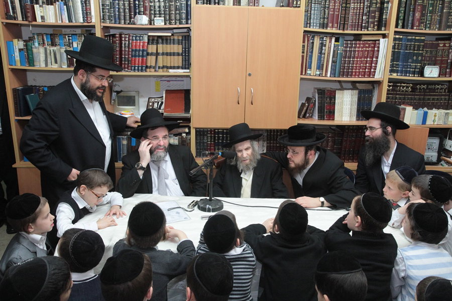 ילדי תלמוד תורה "תורת הבית" בבית שמש הגיעו לבני-ברק לביקור מיוחד בבתי גדולי ישראל, להיבחן ולקבל את ברכתם. בין היתר ביקרו אצל מרנן הגראי"ל שטיינמן, הגר"ח קנייבסי, הגרי"ג אדלשטיין והגרב"ד פוברסקי • הצלם יעקב לדרמן תיעד (חרדים)