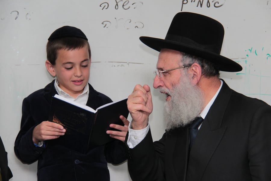 ביקור מרגש: הגאון רבי ראובן אלבז, גדול מחזירי התשובה וראש מוסדות 'אור החיים' הגיע הבוקר (ראשון) לבקר את נכדו שנקרא על שמו - ראובן אלבז בתלמוד תורה 'דיברות משה'.