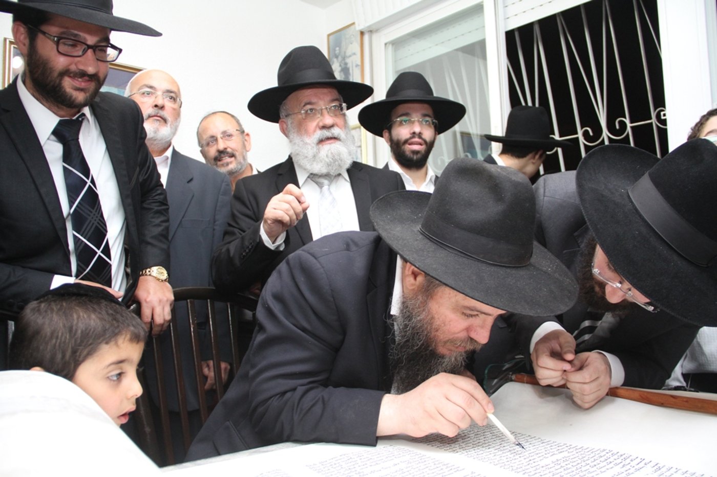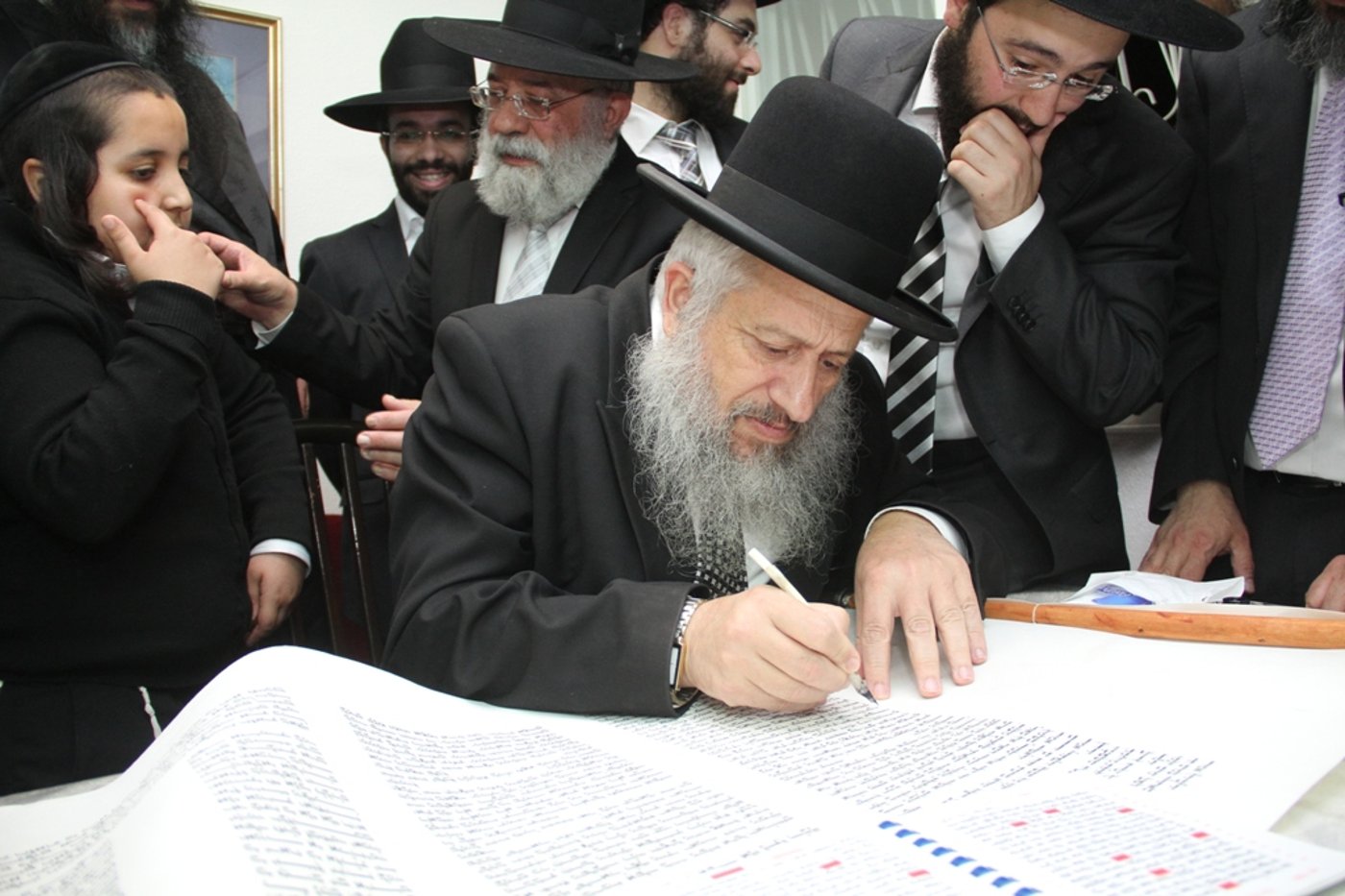 לביתו של הגר"י יוסף הגיעו בזה אחר זה רבנים ואישי ציבור לכתוב את האותיות האחרונות בספר התורה.