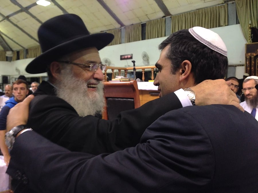 "ידידנו הדגול והיקר, מקדש שם שמיים ברבים, מקדש ה', ברוך המקדש שמו ברבים, יוני שטבון, חבר הכנסת, ה' ישמור אותו ויחיהו, מקדש שם שמיים", אמר הגר"ר אלבז על שטבון שלצדו ישב בנו הקטן.