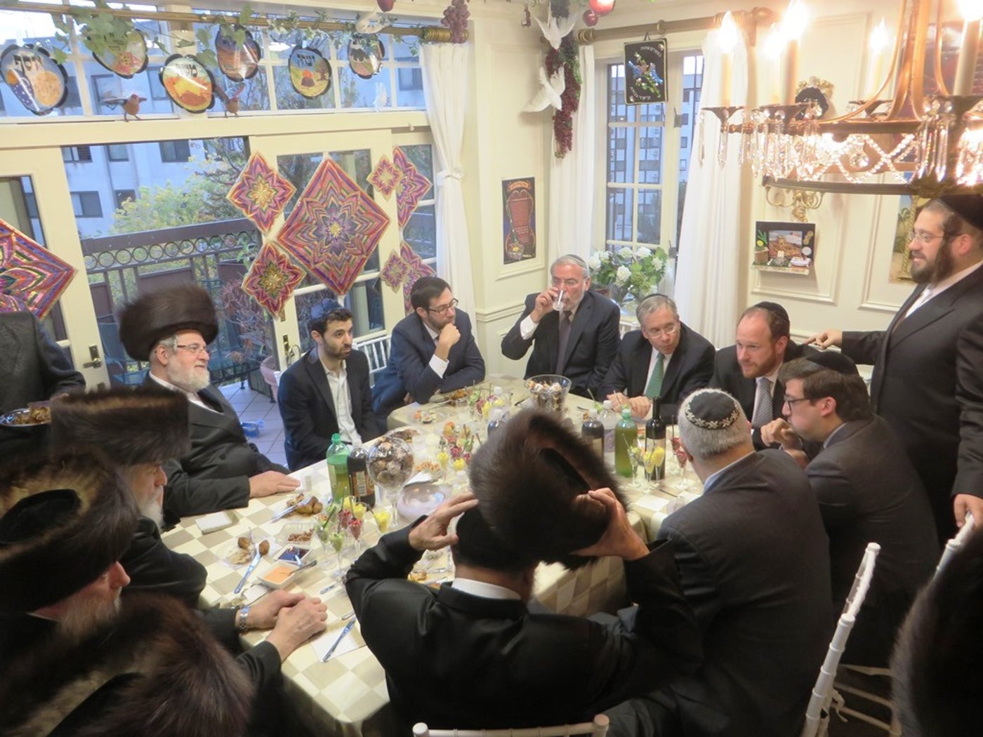 שורה ארוכה של פוליטיקאים הגיעו בחול המועד האחרון לסוכת ראש הקהל החדש בקהילה החרדית בניו יורק הרב יצחק ראזנבערג, יחד עם ראשי העסקנים של הקהילה.
