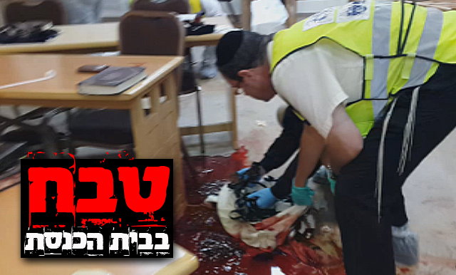 אינתיפאדה בירושלים • הטבח בבית הכנסת: במשך שעות ארוכות (שלישי) עמלו מתנדבי ארגון זק"א לניקוי היכל בית הכנסת "בני תורה", בו נטבחו ארבעת הקדושים הי"ד בעודם עטופים בטלית ותפילין.