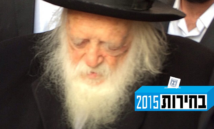 בחירות 2015 • יום הבוחר: רבע שעה לאחר פתיחת הקלפיות הגיע מרן שר התורה הגאון רבי חיים קנייבסקי לקלפי בסמינר וולף ברחוב בעל התניא בבני ברק כדי להצביע בבחירות.