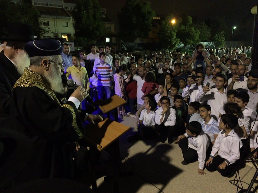 הקפות שניות: הראשל"צ ונשיא בית הדין הרבני הגאון רבי יצחק יוסף השתתף אמש (שני) ב'הקפות שניות' בבית הכנסת 'איילת השחר' העומד להריסה בגבעת זאב.