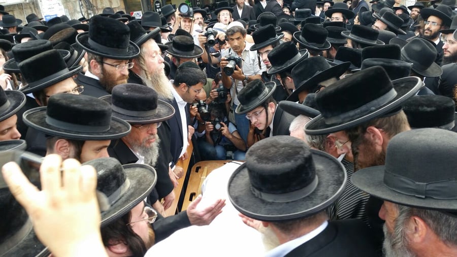 מסע הלוויה יוצא מבית המדרש של חסידות פינסק קרלין אליה משתייך קרישבסקי, בדרכו להר המנוחות שם ייטמן.