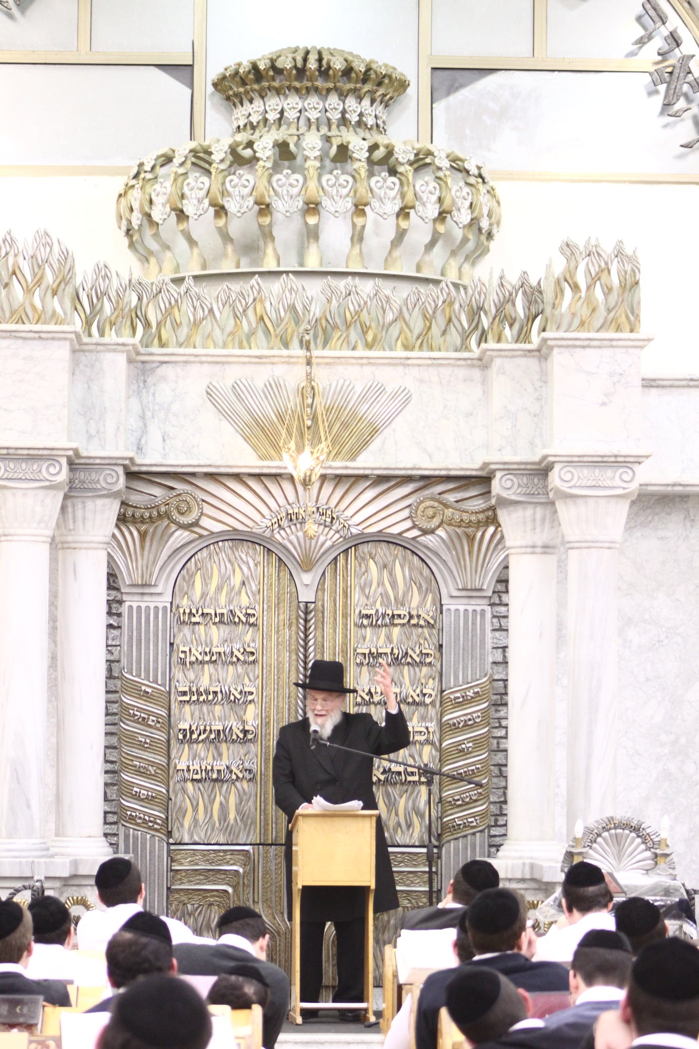 בכניסה המתינו לו ראשי הישיבה הגאון רבי דוד כהן ועימו הגרמ"מ פרבשטיין הגר"ש כץ הגר"י חברוני והמשגיח הגרח"י קפלן, לאחר קבלת הפנים נכנס ראש הישיבה בליווי ראשי ישיבת חברון לשאת את דבריו.