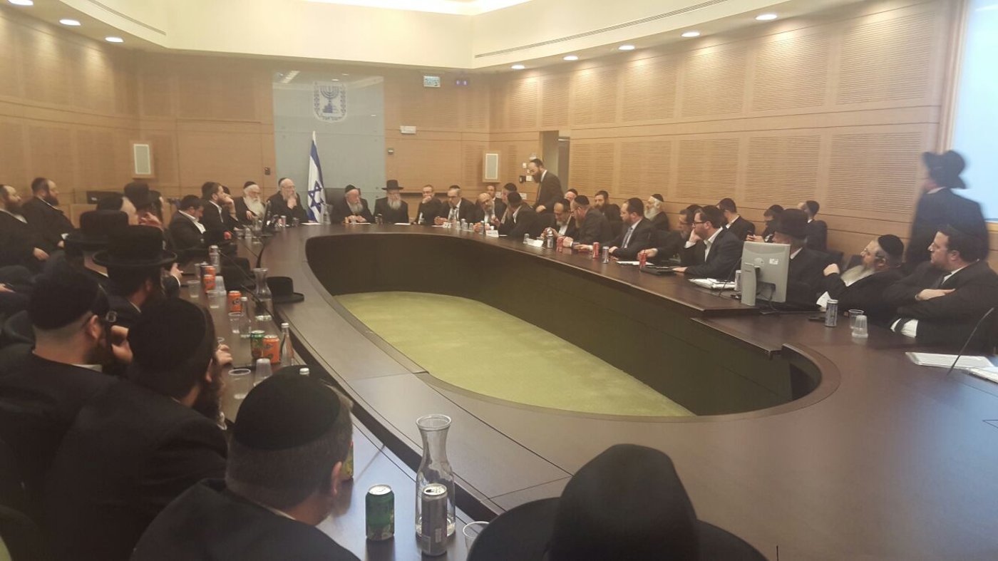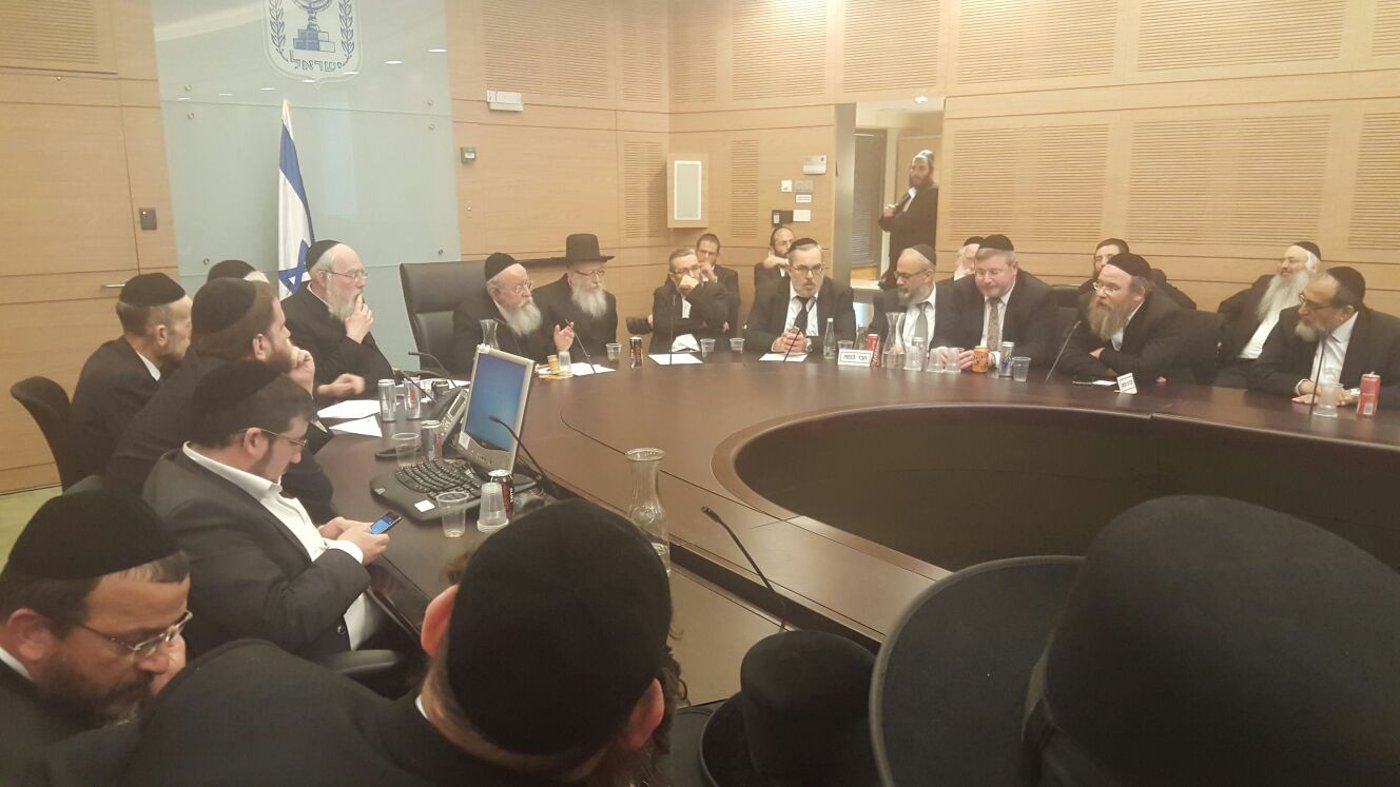 מפאת כמות המשתתפים הגדולה, ישיבת הסיעה הועתקה מחדר הסיעה בכנסת לחדר של ועדת הכספים. בישיבה השתתפו חברי הכנסת משה גפני, אורי מקלב, מנחם לייזר מוזס, ישראל אייכלר, סגן שר החינוך מאיר פרוש ושר הבריאות יעקב ליצמן.