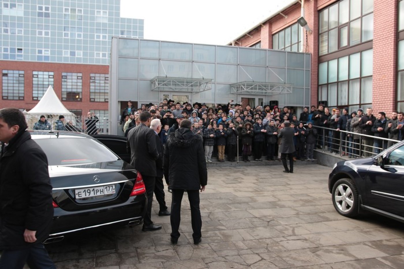 על מדרגות "מרכז החסד היהודי שערי צדק" הסמוך, עמדו כמאה וחמישים תלמידי ת"ת "חדר מנחם" אשר קיבלו את פני הנשיא, שהתרגש לראות ילדים יהודים המתחנכים על טהרת הקודש במוסקבה.