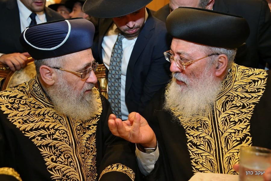 הגר"י יוסף הושיב את הגר"ש עמאר לצדו, כאשר הנכדים המשותפים של שניהם ניגשים בזה אחר זה לקבל את ברכתם. בהמשך, מזגו הרבנים זה לזה כוסות יין וערכו "לחיים", כשהאלפים בקהל שרים לכבודם.