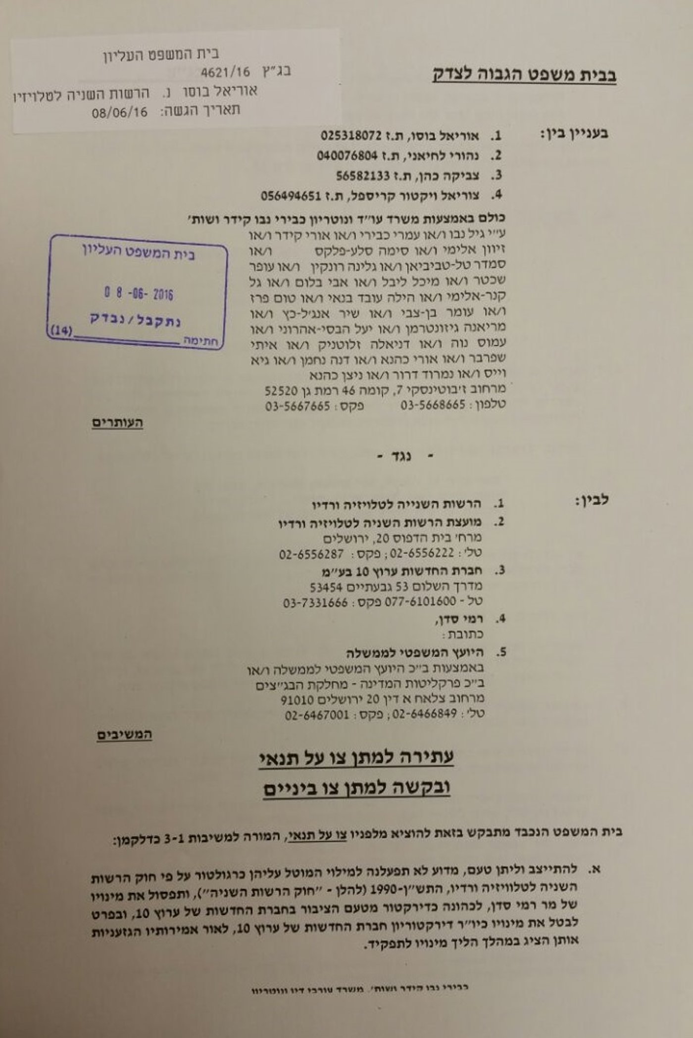 סערת הגזענות: ארבעה סגני ראשי ערים מטעם ש"ס, הגישו לפני שעה קלה (רביעי) עתירה דחופה לבג"ץ בדרישה להקפיא לאלתר את מינויו של רמי סדן ליו"ר דירקטוריון ערוץ 10 על רקע פרסום התבטאויותיו.