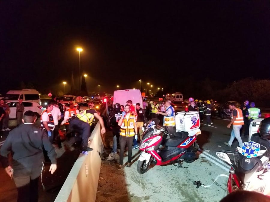 ממד"א נמסר: "חובשים ופאראמדיקים של מד"א קובעים את מותו של גבר כבן 30 ומעניקים טיפול רפואי ומפנים לבתי החולים 5 פצועים , בהם : 2 צעירות כבנות 20 במצב קשה, 3 קל".