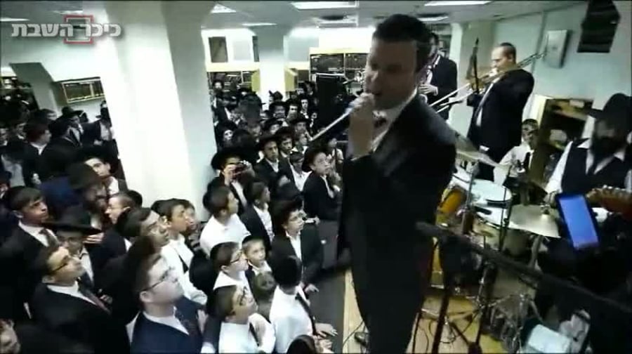 רכניץ שר עם אוהד מושקוביץ מלחניו החדשים יחד עם הבחורים, תלמידי הישיבה.