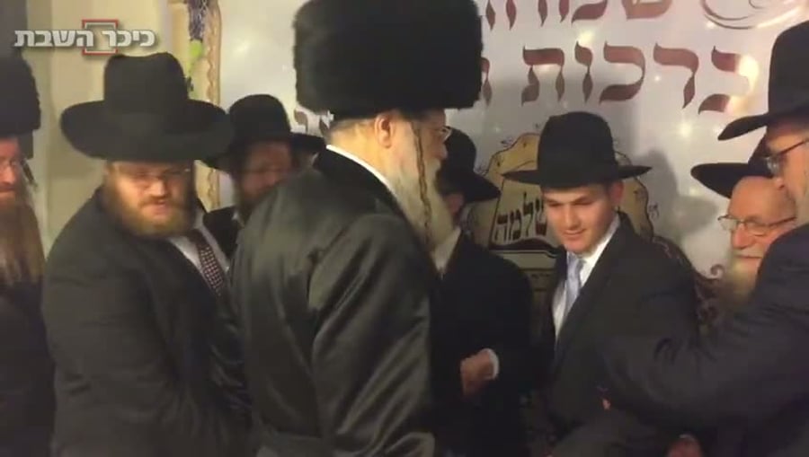 האדמו"ר והח"כ בריקוד עם החתן (צילום: כיכר השבת)