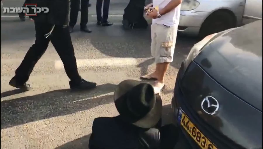 בתיעוד שהגיע לידי "כיכר השבת" נראה נהג חילוני יוצא עם מקל בידיו ומכה את המפגינים כאשר תלמידי הישיבות מוחים בו על התקיפה.