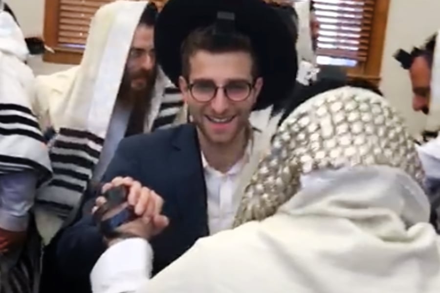יצי כובד בעלייה לתורה ובירך את ברכת "הגומל" בשם ובמלכות, כשלאחר מכן יצא יחד עם רב בית הכנסת, גאב"ד סאטמר ליקווד והמתפללים בריקוד של שמחה לשירת "סימן טוב ומזל טוב יהא לנו ולכל ישראל".