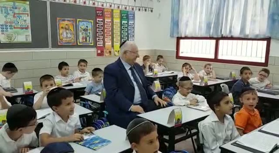 לאחר מכן התיישב הנשיא ריבלין לצד ילדי כיתה א' שהחלו הבוקר, ראש חודש אלול, את יום הלימודים הראשון ושר עימם יחד את ניגון הפרשיות. לאחר מכן סיפר להם על ההתרגשות הגדולה שהוא חש לפגוש אותם: "אתם כבר יודעים א' ב' ועוד מעט תלמדו חומש, ואחר כך משניות ותלמוד, ומי שלומד הופך להיות תלמיד חכם".