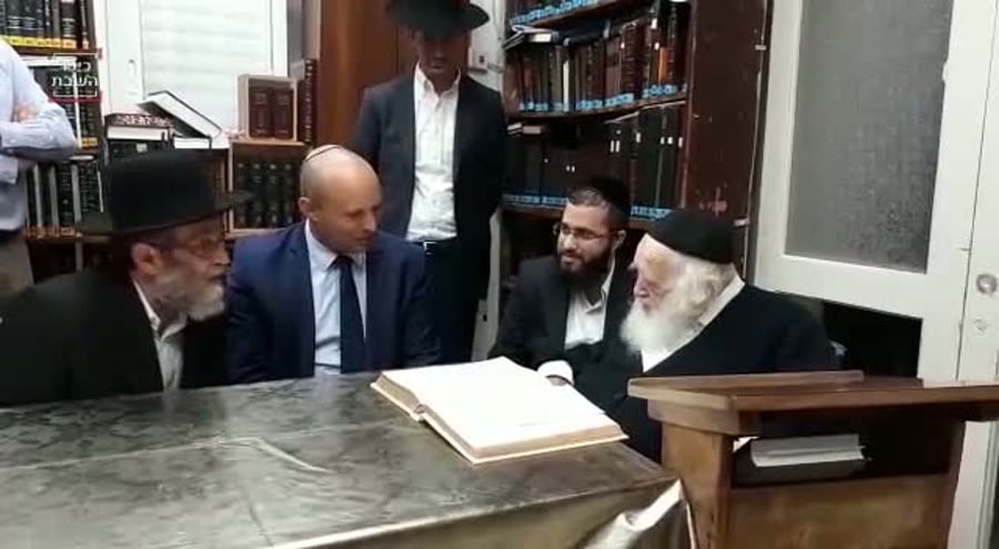 בנט הגיע לבית מרן כשהוא מלווה ביו"ר וועדת הכספים ויו"ר דגל התורה ח"כ משה גפני, והתקבל בחמימות רבה ע"י מרן הגר"ח ששוחח עימו ארוכות.