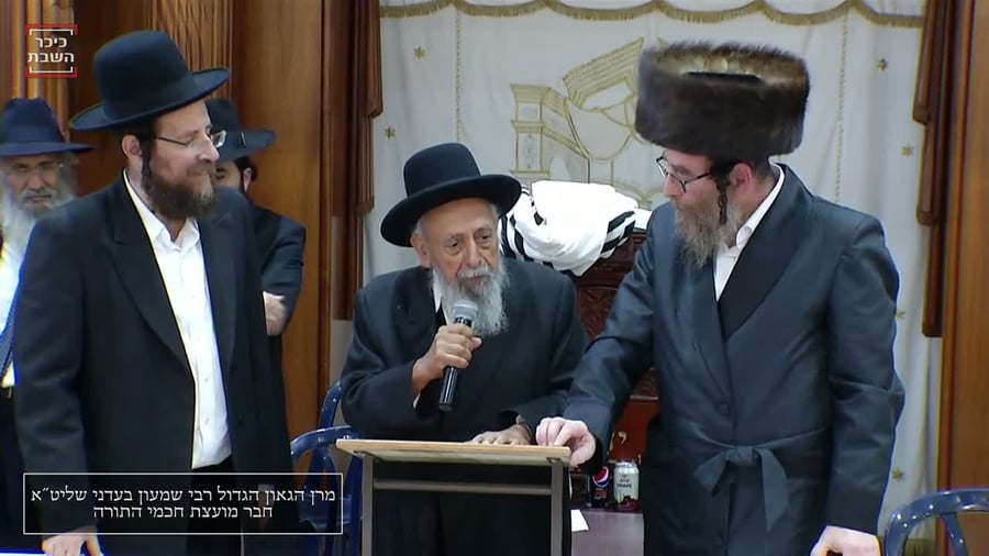 הילדים קיבלו בשירת "ימים על ימי מלך" את פני מרנן ורבנן גדולי ישראל שבאו לכבד את הילדים שישבו במהלך השנה האחרונה והגו בתורה מידי ערב בשעות שמעבר לשעת הלימוד במוסדות החינוך.