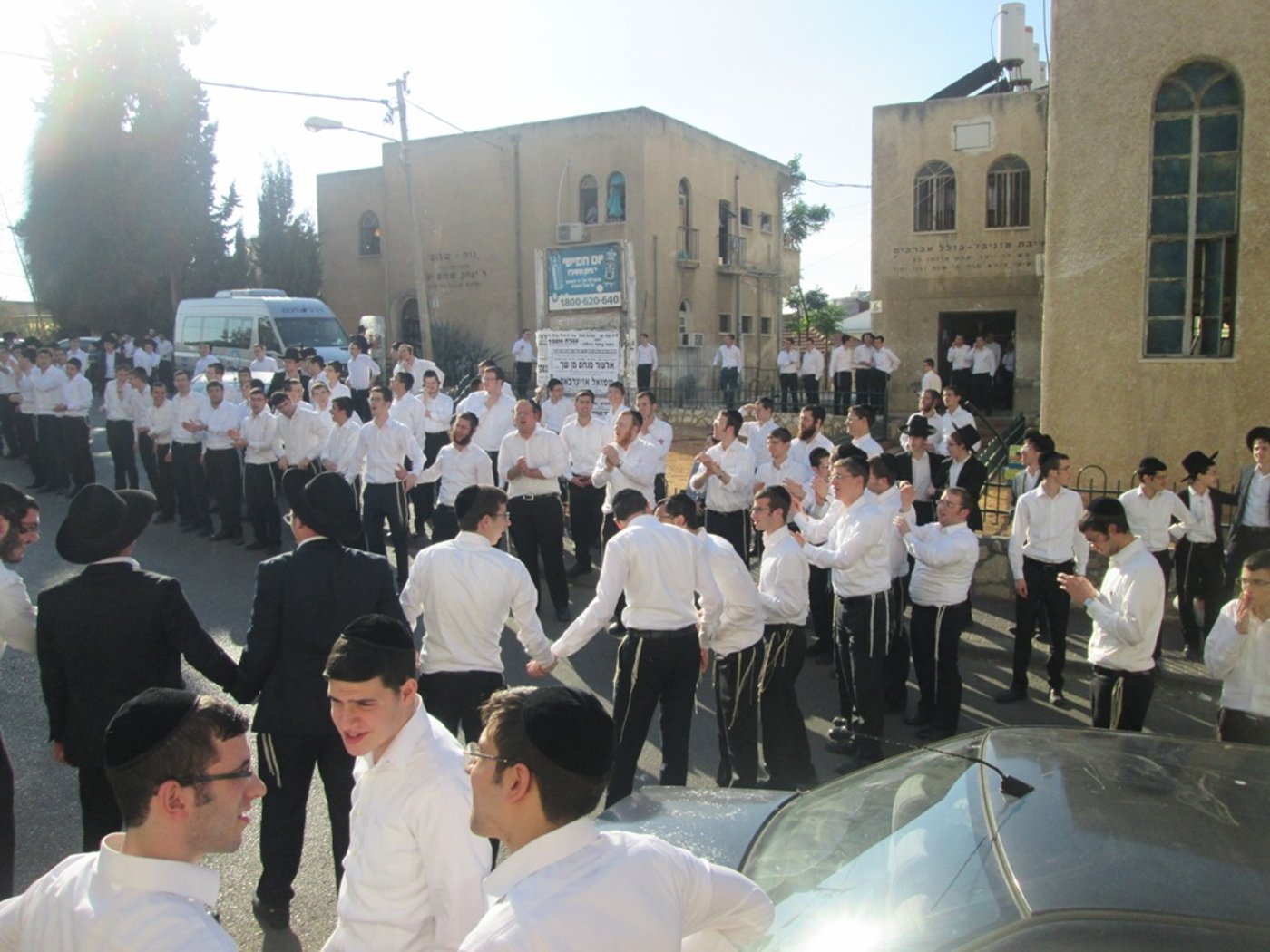 תלמידי הישיבה העריקים מישיבת פוניבז' ששוחררו אמש (שני) מכלא 6 לאחר שנעצרו בהפגנות 'הפלג הירושלמי' והועברו לכלא צבאי - התקבלו על ידי עשרות מחבריהם בשירה וריקודים שנמשכו שעה ארוכה.