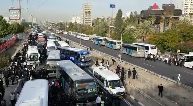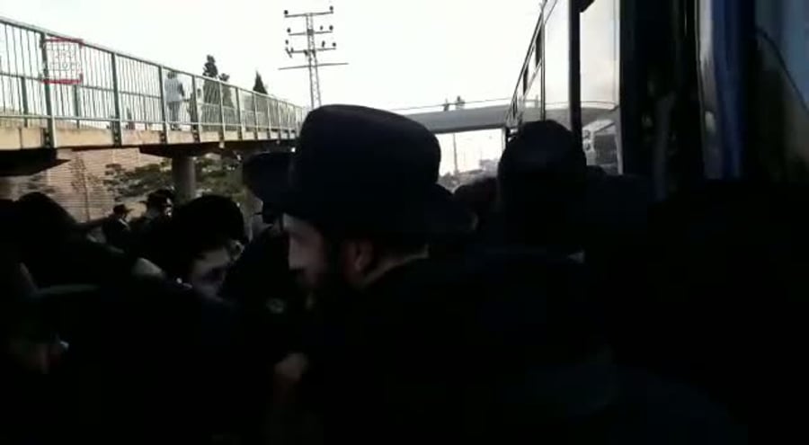אוטובוסים בודדים שהגיעו לאסוף את ההמונים, בדרכם למודיעין עילית, נתקלו בעומס עצום. המשטרה אפשרה לזמן קצר מעבר קבוצות של 20 איש בלבד על הגשר, בכדי שיגיעו לאוטובוסים שחנו מהעבר השני.