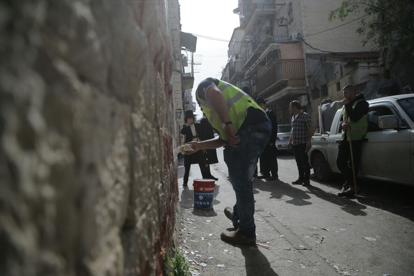 עובדי עיריית ירושלים מחקו הבוקר (ראשון) את כתובת הגרפיטי שרוססה בשכונת מאה שערים והזמינה את יו"ר 'ישראל ביתנו' ושר הביטחון אביגדור ליברמן ל"ביקור בשכונה".