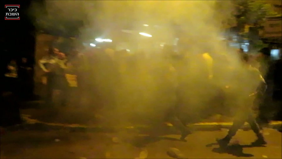 במהלך ההפגנה שנמשכה שעות ארוכות השליכו השוטרים רימוני הלם ופיזרו את המפגינים בכח רב. בתיעוד חדש המתפרסם כעת ב'כיכר השבת' נראים קבוצת שוטרים כשהם מיידים את הרימונים על המפגינים וברקע קריאות 'הצלה' תוך כדי שהעימותים נמשכים.