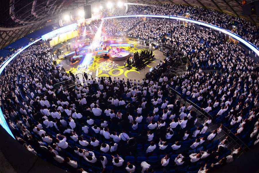 למעלה מ-12,000 ילדים השתתפו אמש (שלישי) בכינוס ענק בראשותו של מרן שר התורה הגאון רבי חיים קנייבסקי שהתקיים בהיכל מנורה (אצטדיון יד אליהו) בתל אביב.