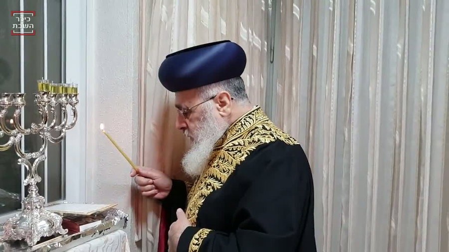 רגע לפני שהוא יוצא לשיעורים ברחבי הארץ, הראשון לציון והרב הראשי הגאון רבי יצחק יוסף הדליק נרות חנוכה יחד עם הרבנית ובני הבית • "כיכר השבת" בתיעוד מיוחד. צפו (חרדים)
