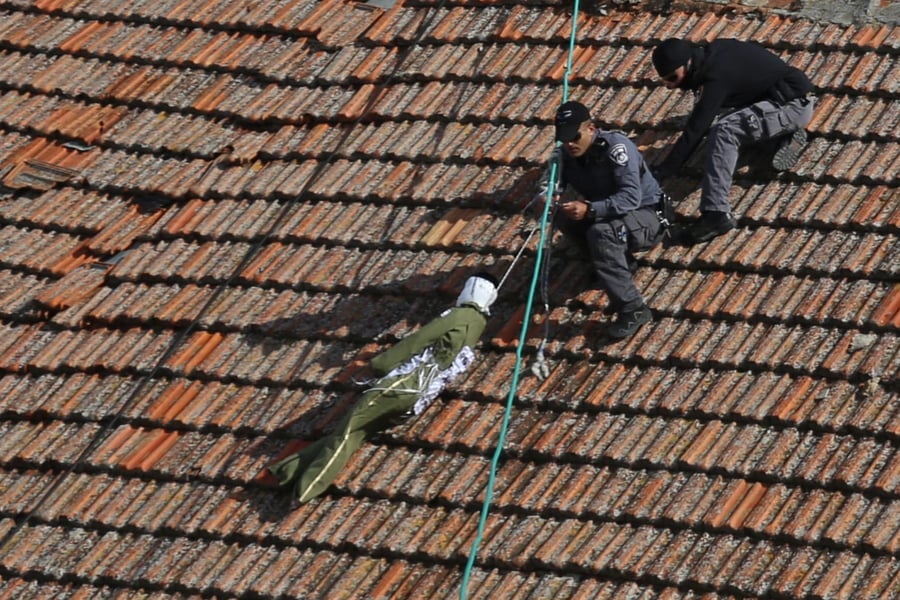 מדוברות משטרת ירושלים נמסר: "כוחות משטרה פעלו לפני זמן קצר בשכונת מאה שערים בירושלים והורידו בובה בדמות חייל שנתלתה על אחד הגגות".
