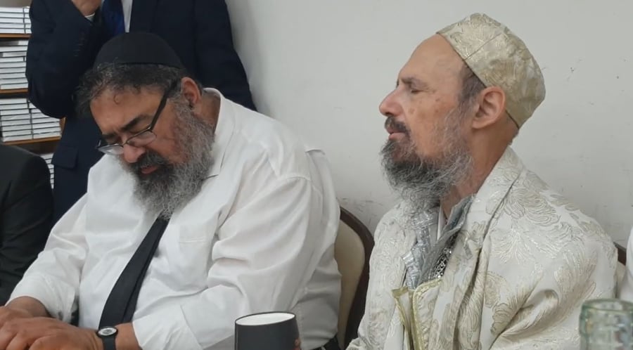 לצידו של המקובל בסעודה, נראה אחיו הרב אברהם יצחק הכהן קוק.