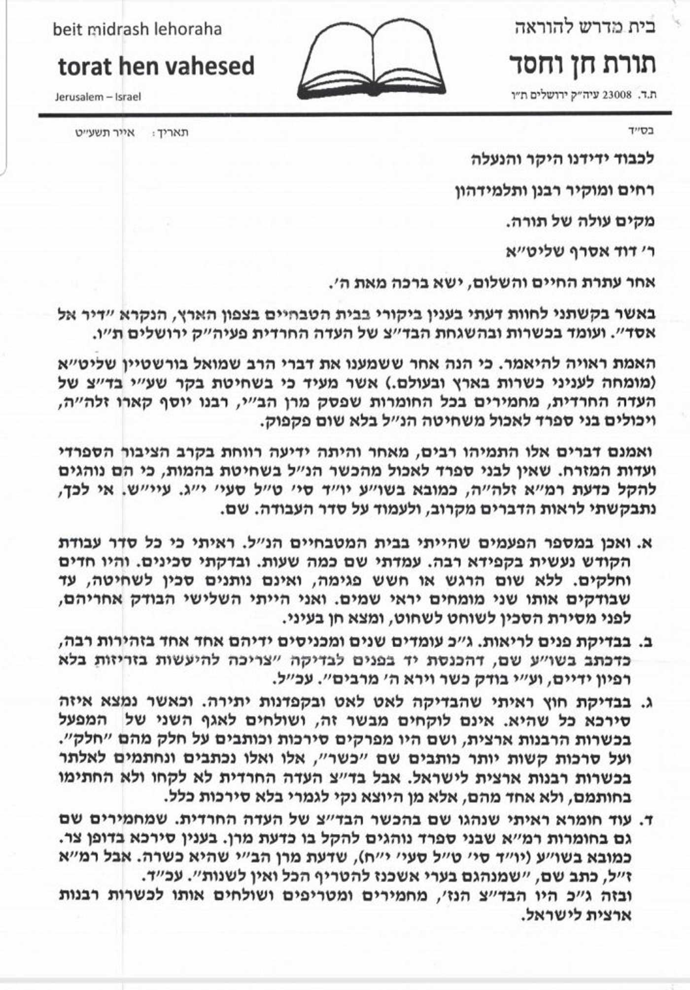 תחת הכותרת "הבהרת דברים", הסבירו במכתב מיוחד מטעם ועד השחיטה שע"י העדה החרדית, "היות ופורסם דברים בקשר לשחיטת הבד"צ במשחטת "דאבח דיר אל אסד".